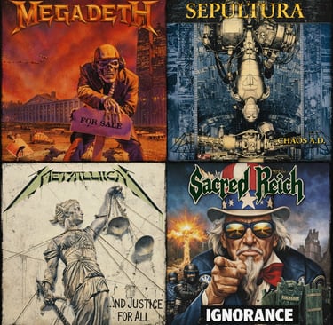 A young man sits in front of a television screen watching scenes depicting rioting, demonstrations and civil unrest. Intercut with footage of a band playing in front of a ferocious crowd, the music video to one of Megadeth’s most iconic songs, ‘’ Peace sells but whose buying’’, is interrupted by the boy’s father shouting at him to change the channel to the news. Replying that, ‘’this IS the news, he ignores the command, defiantly turns up the volume and continues watching. With lyrics such as, ‘’ if there’s a new way, I’ll be the first in line, but it better work this time’’, anthemic songs like the title track to Megadeth’s critically acclaimed second album were synonymous with the dissatisfaction felt by an increasingly disgruntled and angry generation.